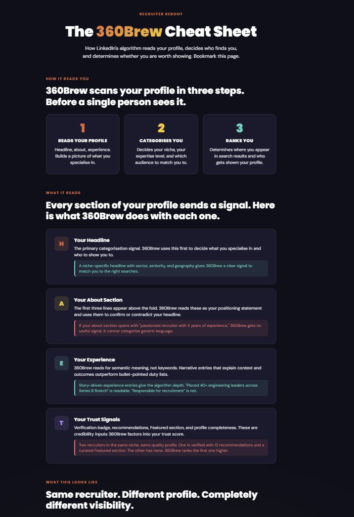 LinkedIn's new AI decides which recruiters appear in search results and which ones get skipped entirely. If your profile has not been rebuilt for 360Brew, clients and candidates searching for exactly what you do will never see you.