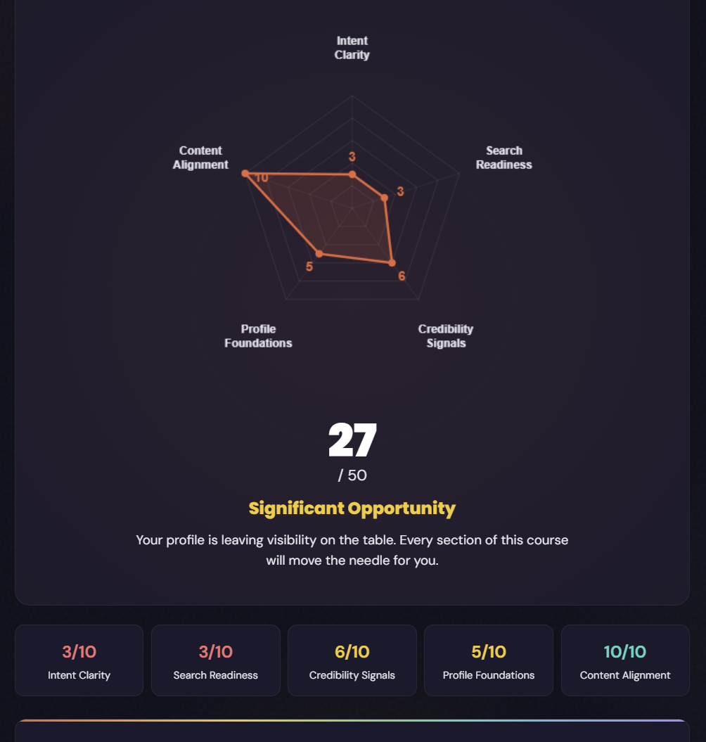 The built-in audit scores your profile against the algorithm before you change anything. You will see which sections are working, which are hurting you, and what to fix first.