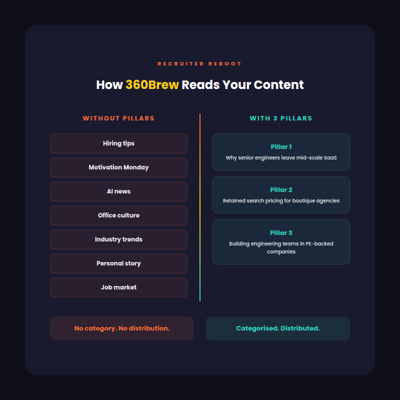 Not "recruitment." Not "leadership." A pillar specific enough that 360Brew can match your content to the right audience after 90 days.